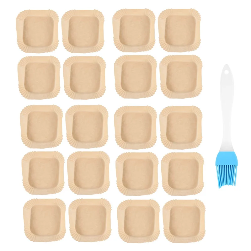 B58B-50Pcs Air Fryer Parchment Paper With Oil Brush Air Fryer Liners Square 6.3 Inch Disposable Baking Paper Air Fryer Sheets